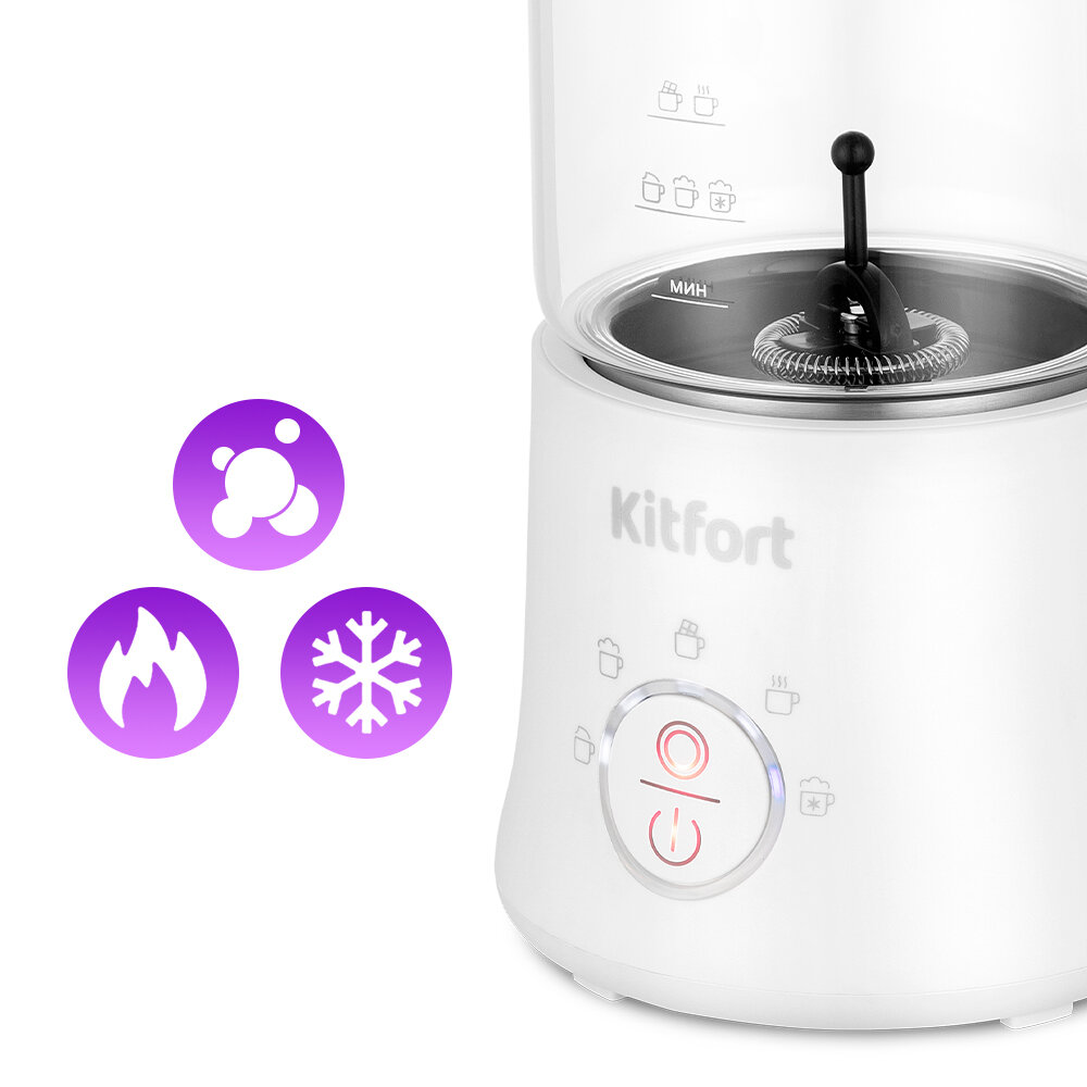 Капучинатор КТ-7199 – устройство для приготовления молочной пенки, используемой для напитков на базе эспрессо: капучино, латте и латте макиато. КТ-7199 – идеальный выбор для приготовления плотной и однородной молочной пены для любимых напитков!