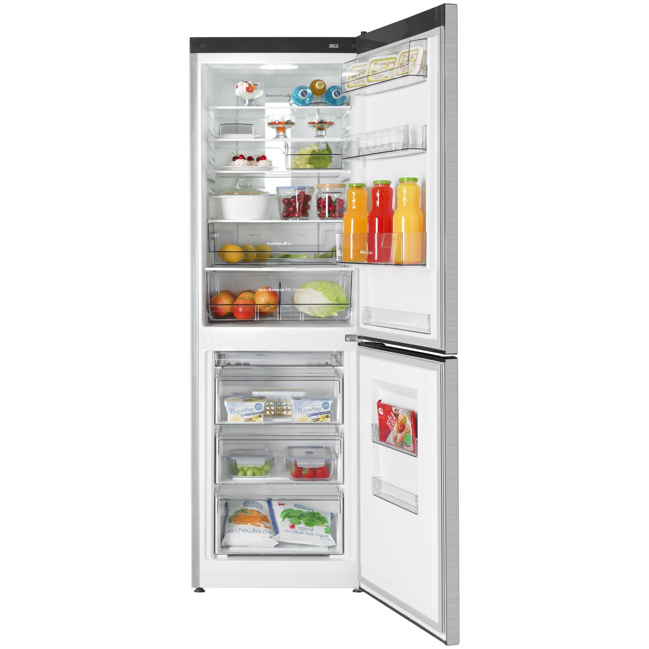 LED-освещение, масленка, складная полка, самодиагностика, отделение с контролируемой влажностью, доводчик двери, экономичный режим, охлаждение напитков