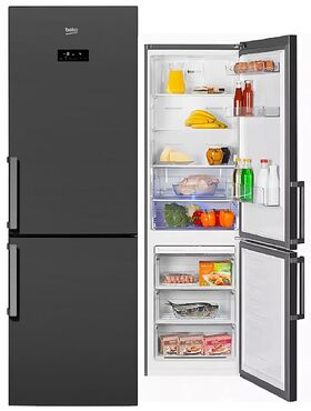 количество камер: двухкамерный; расположение морозильной камеры- снизу, размораживание морозильной камеры- No Frost, общий объем 365л, зона свежести, защита от детей, цвет: антрацит