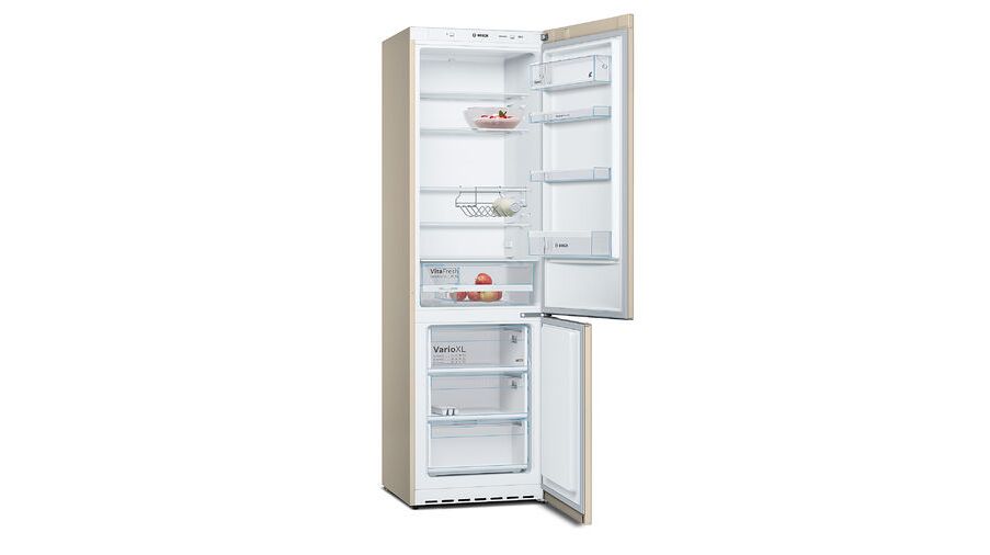 Особенности холодильной камеры VARIO XL — больше уровней для стеклянных полок. Дополнительная алюминиевая подставка для бутылок. 4 дверные полки, из них 1 отделение для молочных продуктов.