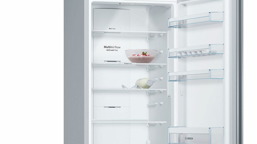 Дополнительно Serie 4 VitaFresh. 1 компрессор, 2 контура циркуляции; Загружать и доставать продукты из холодильника проще благодаря выдвижным полкам EasyAccess. Свежесть в холодильнике обеспечивает специальный угольный фильтр AirFresh.