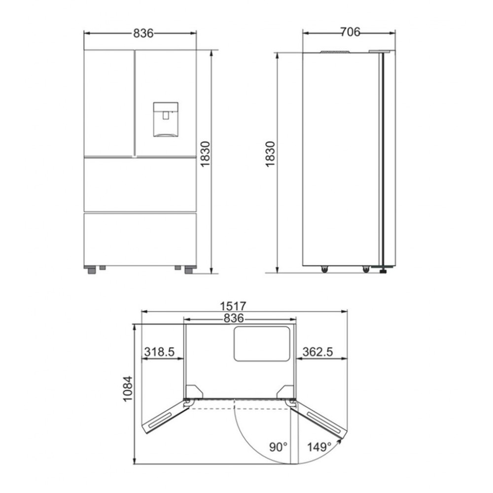Габариты (ШxГxВ), мм. 836/706/1830