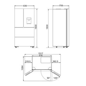 Минимальные размеры для встраивания (ШxГxВ), мм 836/706/1830
