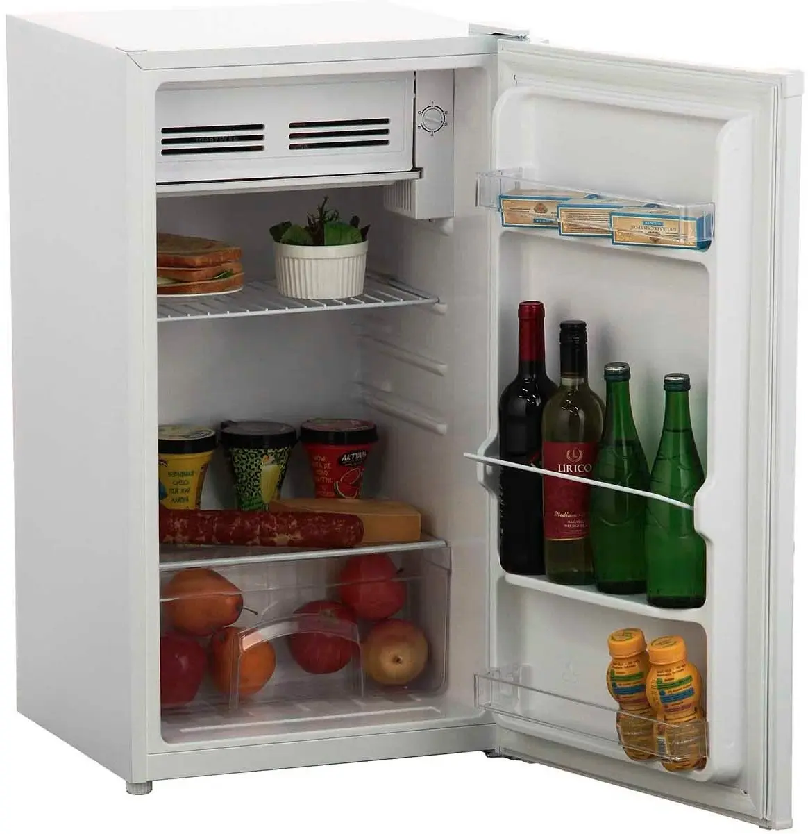 Kraft KR-115W – компактный холодильник с полезным объёмом 98 литров, 10 из которых занимает морозилка. Модель отлично подходит для небольшой семьи и для использования на даче. Дверь можно навесить на выбор справа или слева, так что проблем с размещением точно не возникнет.