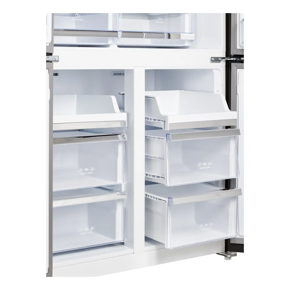 Особенности холодильника: Full No Frost, Антибактериальное покрытие камеры, Генератор льда, Дизайнерское оформление, Дисплей, Зона свежести, Часы, Суперохлаждение, Суперзаморозка, Скрытые ручки, Светодиодная подсветка