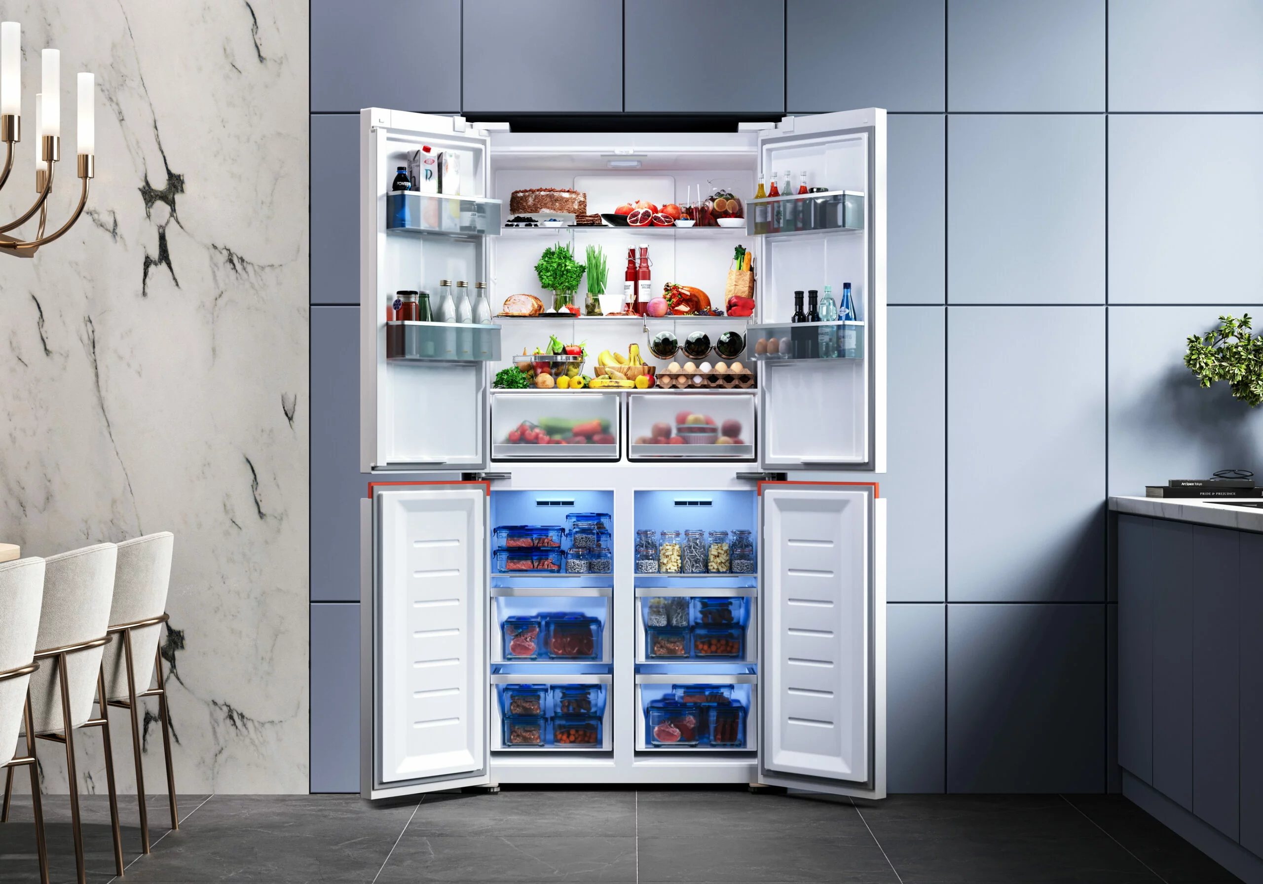 В холодильной камере – 2+2 / В морозильной камере – 4