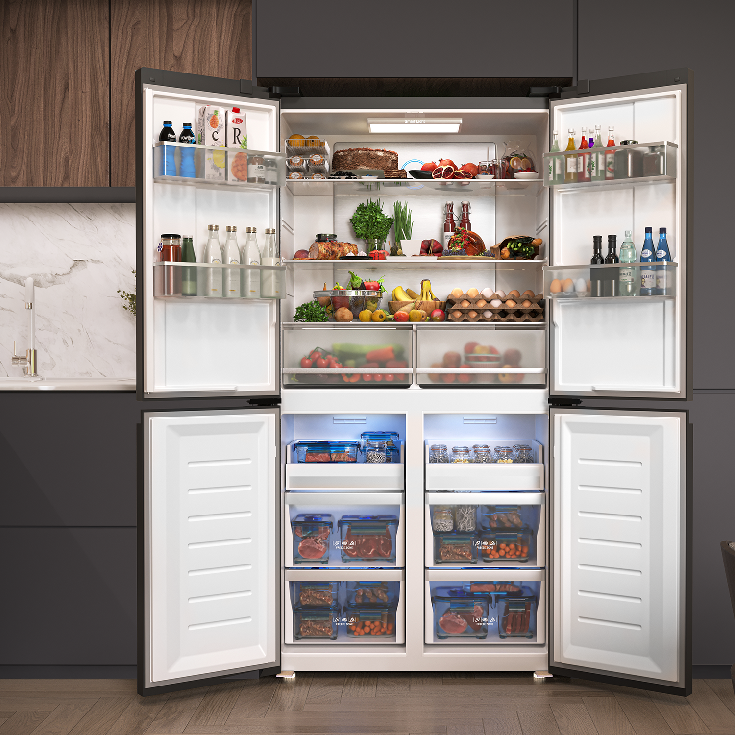 В холодильной камере – 2+2 / В морозильной камере – 4