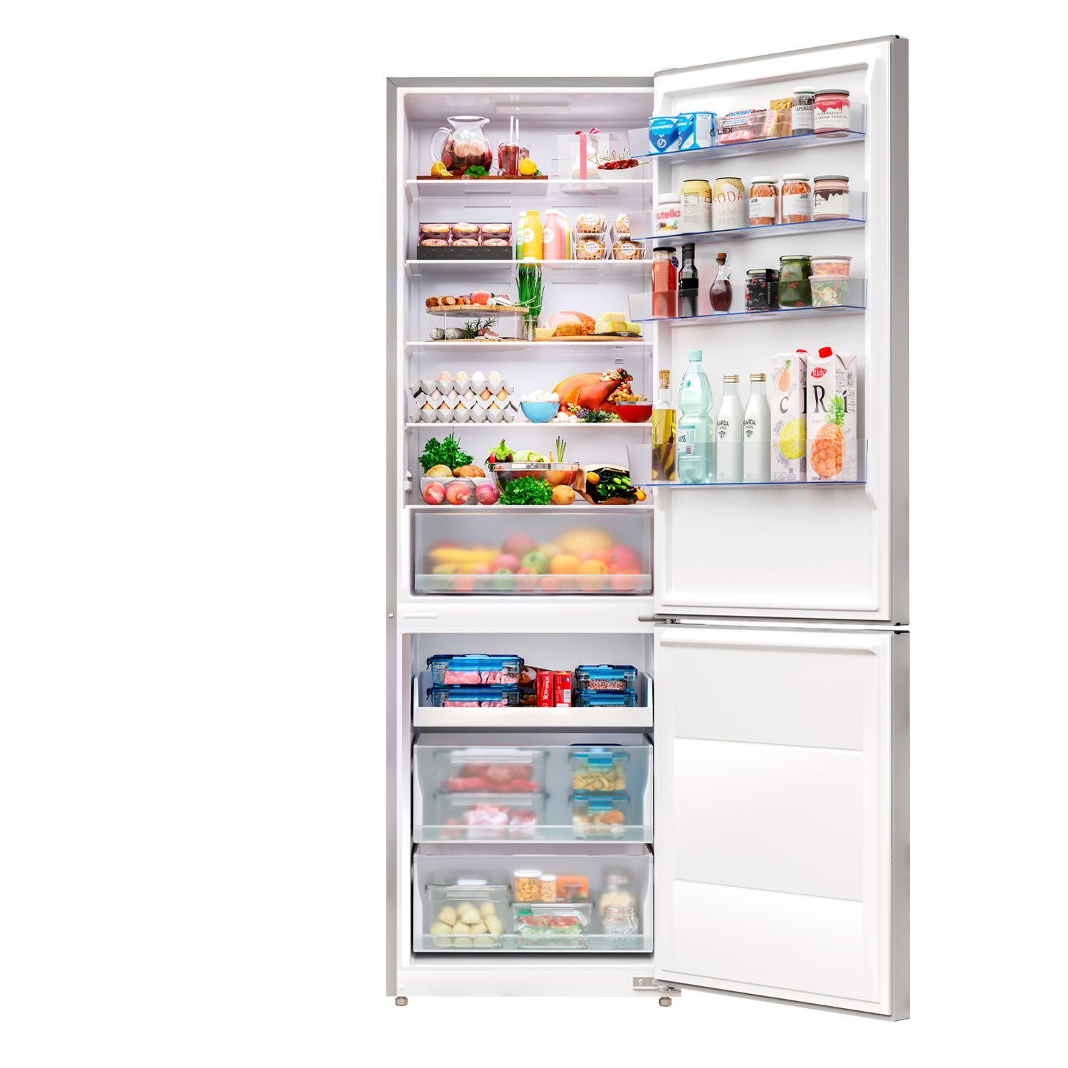 Два отделения с полезным объемом 456 литров дают возможность хранить все блюда и напитки на удобном уровне. Внутреннее пространство холодильника организовано максимально эффективно благодаря регулируемым полкам.