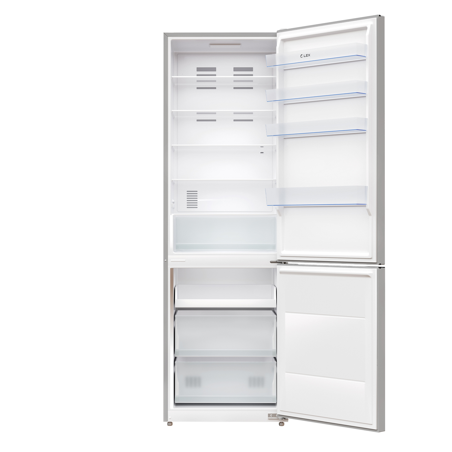LED-лампы обеспечивают яркий свет, помогая вам быстро найти все, что нужно. Электронная панель управления делает настройку параметров интуитивно понятной. А перенавешиваемые двери делают холодильник LEX LKB201 универсальным для любой кухни.