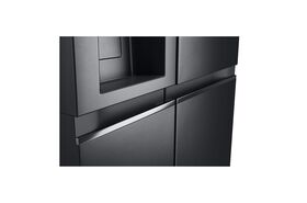 Холодильник отличается общим объемом 674 л и конструкцией с двумя распашными дверцами. В холодильном и морозильном отделениях используется система NoFrost, которая предотвращает необходимость размораживания. На передней панели имеются дисплей с кнопками, диспенсер подачи воды и автоматический генератор льда.