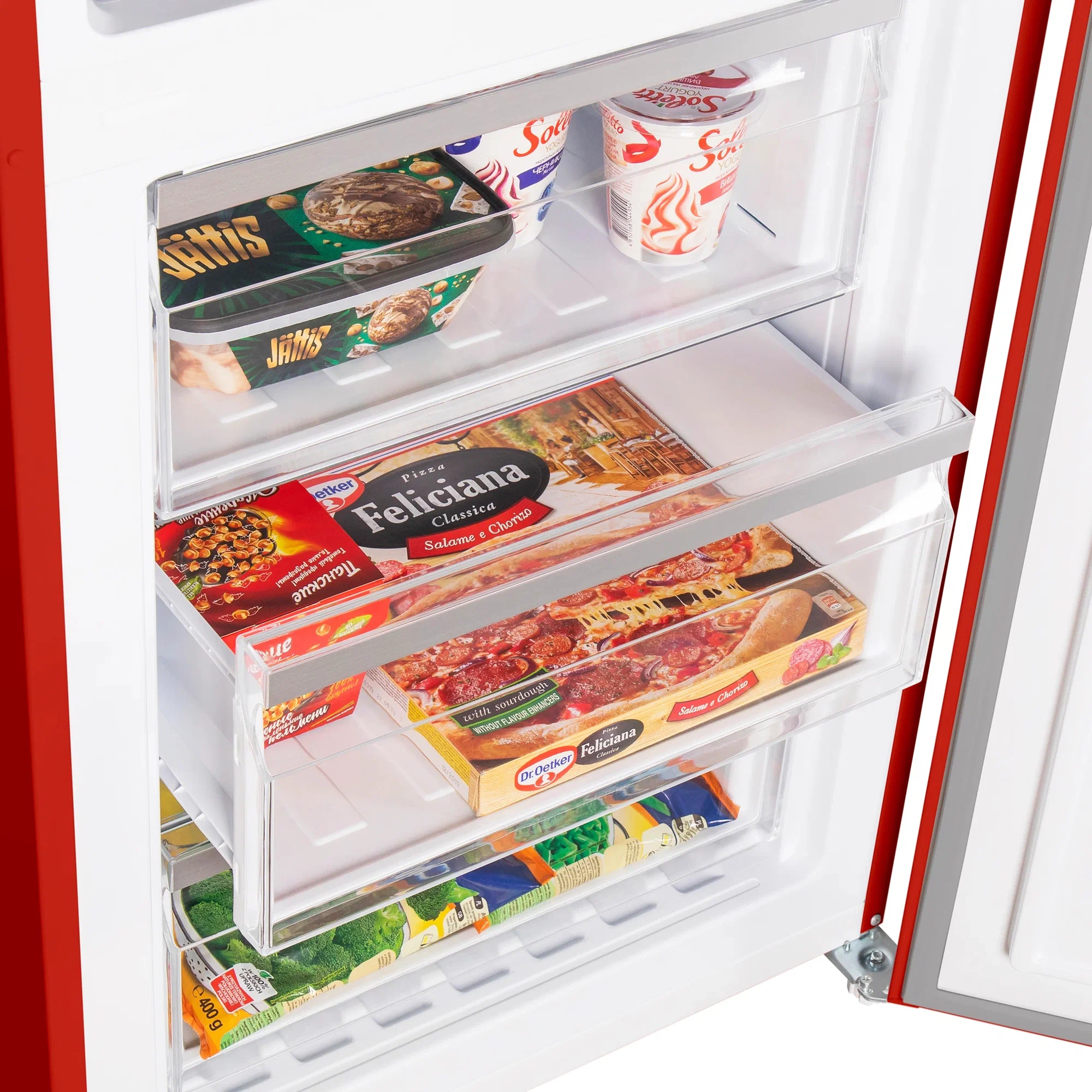 Более того, отсутствие наледи на стенках обеспечивает эффективный процесс теплообмена, что поддерживает энерго-потребление на низком уровне. высокий уровень мощности охлаждения, поддерживаемый системой NoFrost, позволяет замораживать значительное количество продуктов при поддержании постоянной температуры, сохраняя все пищевые свойства.