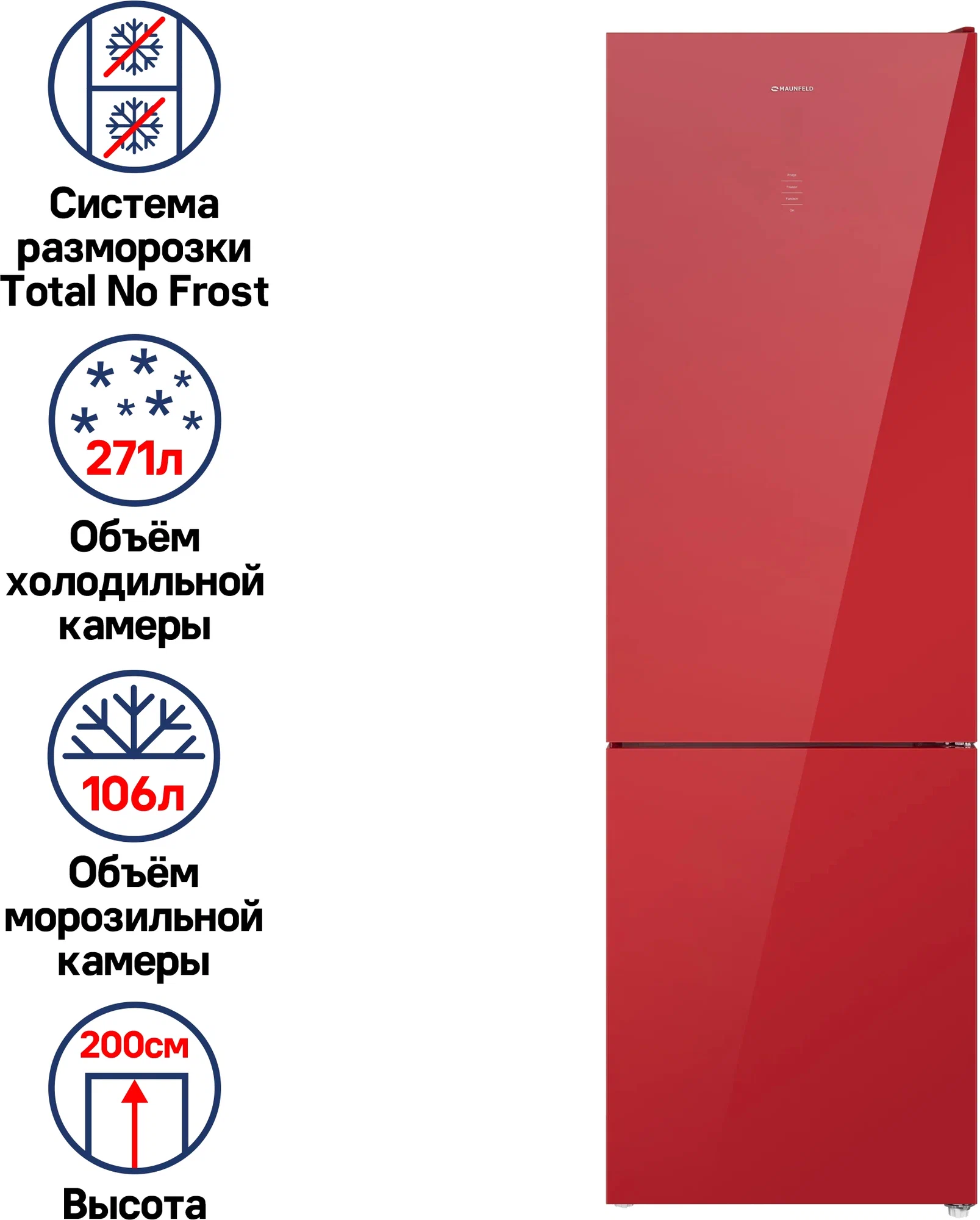 Больше нет необходимости размораживать холодильник, так как наледь не образуется в холодильниках MAUNFELD с системой автоматического оттаивания (NoFrost). Главные преимущества системы NoFrost в морозильной камере: замороженные продукты больше не склеиваются, не уменьшается внутреннее пространство из-за образования наледи, а ящики всегда так же легко и удобно открывать, как при первом использовании камеры.