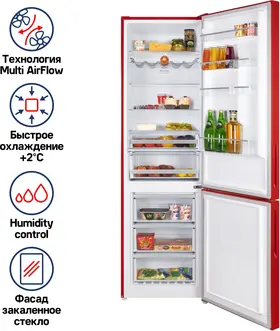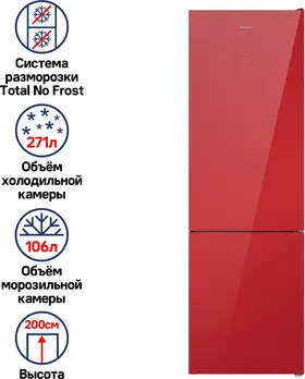 полезный объём, 351 л; полный NoFrost в холодильном и морозильном отделениях; сенсорное управление; материал фасада - стекло