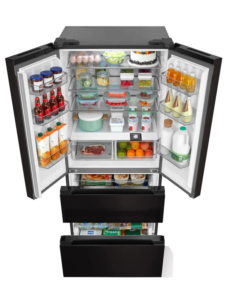 Особенности холодильника: Full No Frost, Антибактериальное покрытие камеры, Дисплей, Зона свежести, Светодиодная подсветка, Система контроля влажности, Скрытые ручки, Суперзаморозка, Суперохлаждение