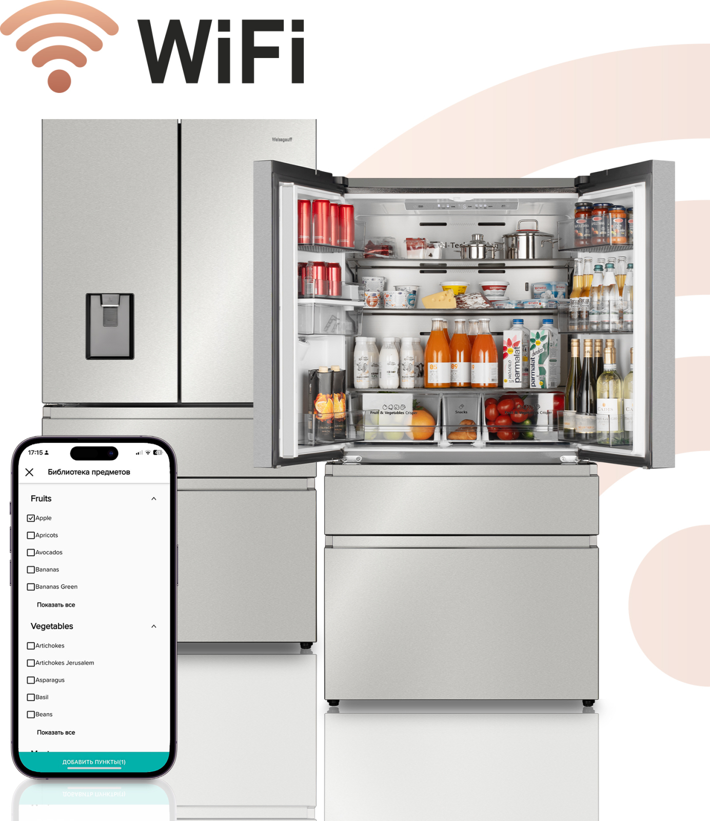 Отдельностоящий холодильник Weissgauff, выполненный в современном европейском дизайне FrenchDoor в цвете "нержавеющая сталь", обладающий Wi-Fi модулем управления с мобильным приложением, системой подачи охлажденной питьевой воды, технологиями Multi Air Flow и Metal-Tech Cooling, а также полной системой размораживания Full No Frost - это поистине одна из самых передовых и функциональных моделей холодильников, имеющихся на рынке на сегодняшний день! Воплощая в себе соотношение фантастической вместительности, безупречной эргономики внутреннего пространства, технологического совершенства и великолепного дизайна - он является одним из безусловных флагманов Weissgauff, способным вывести для вас понимание того, на что способен холодильник, на совершенно новый уровень!