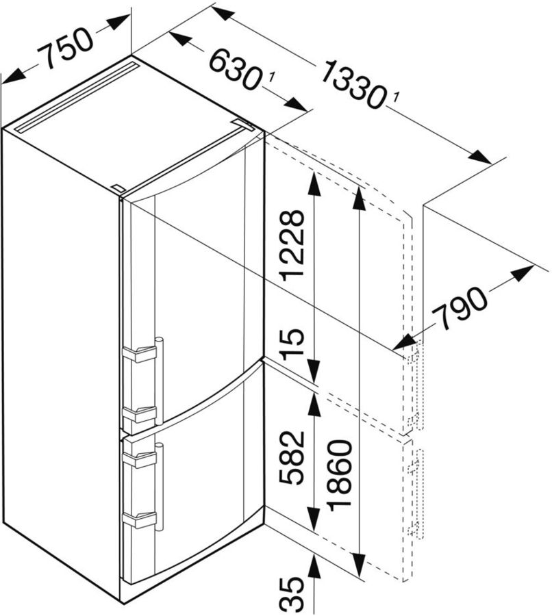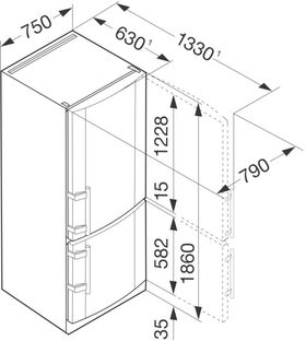 * Энергетическая эффективность, заявленная производителем, может быть достигнута в случае установки ограничителей на заднюю стенку прибора. Ограничители увеличивают глубину прибора на 3,5 см (1,5 см BluPerformance). Отказ от использования ограничителей не отразится на корректной работе прибора, однако уровень потребления электроэнергии несколько увеличится.