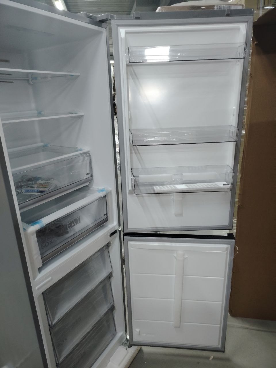 Две зоны свежести, выдвижные полки Easy Get