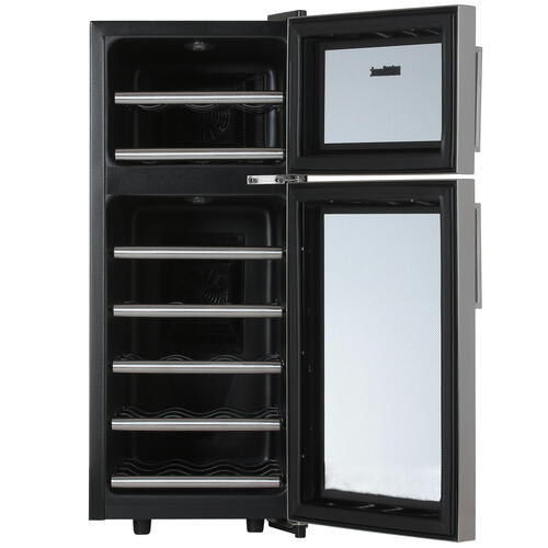 Дополнительно термоэлектрическая система охлаждения, стекло с защитой от УФ-лучей, сенсорное управление, 2 температурные зоны, голубая LED подсветка