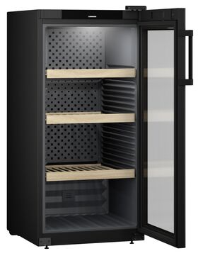 Винный шкаф Liebherr WPbl 4201 GrandCru – климатический шкаф, создает условия хранения, аналогичные винному погребу. Три полки из бука гасят вибрацию, дышат и удерживают небольшое количество воды, что поддерживает внутренний микроклимат. Задняя стенка из металла графитово-серого цвета обеспечивает циркуляцию воздуха. Модель WPbl 4201 вмещает 141 бутылку Бордо 0,75 литра. Можно активировать презентационный режим для демонстрации модели серии Pure на выставках или в магазине. WPbl 4201 можно подключить к сети интернет с помощью модуля SmartDevice.