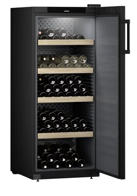 Винный шкаф Liebherr WSbl 4601 GrandCru с глухой дверью и вместимостью 166 бутылок Бордо 0,75 л. Полезный объем винного отделения 322 литра. Когда дверца открыта на 90° EasyFill удерживает ее открытой. При угле открытия меньше девяносто градусов SelfClosing плавно автоматически закрывает дверцу. Трехзначный PIN-код предотвратит несанкционированное использование климатического шкафа. Потолочное LED-освещение эффектно демонстрирует коллекцию вин. Функция HumiditySelect позволяет настроить на дисплее два уровня влажности: стандартный и высокий. Сухая задняя панель из металла цвета антрацит обеспечивает циркуляцию воздуха.