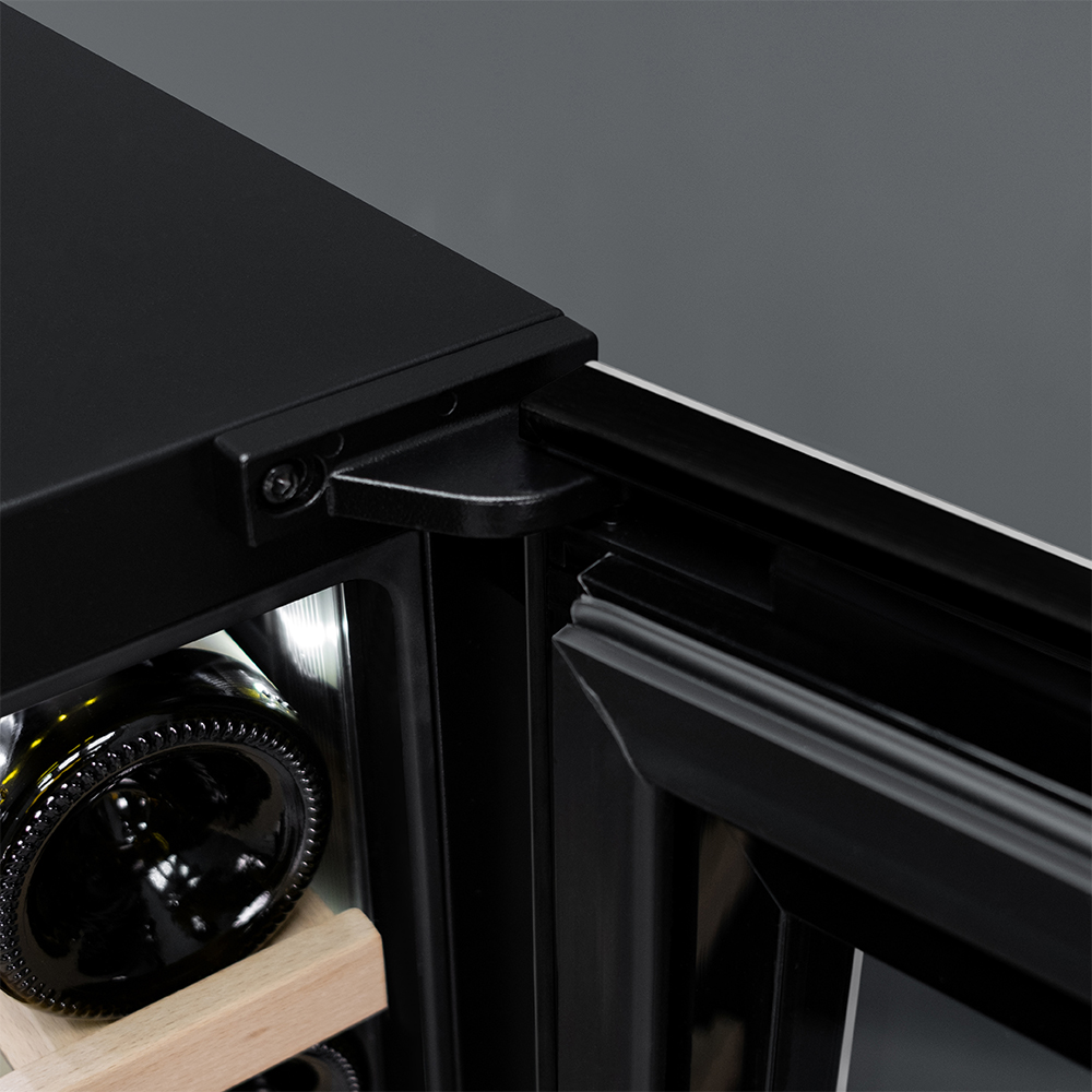 необходимо установить винный шкаф по уровню и отрегулировать зазоры между дверью и мебельным фасадом, чтобы не повредить их.