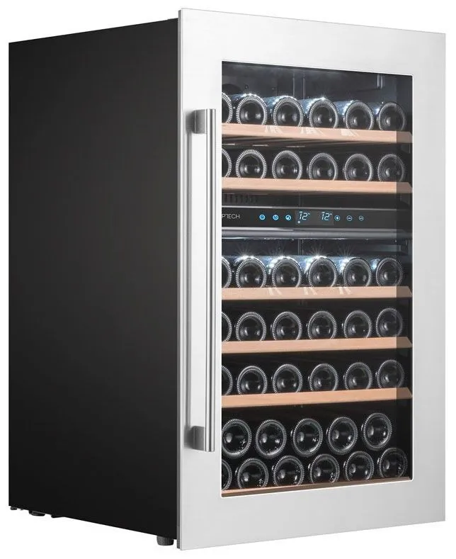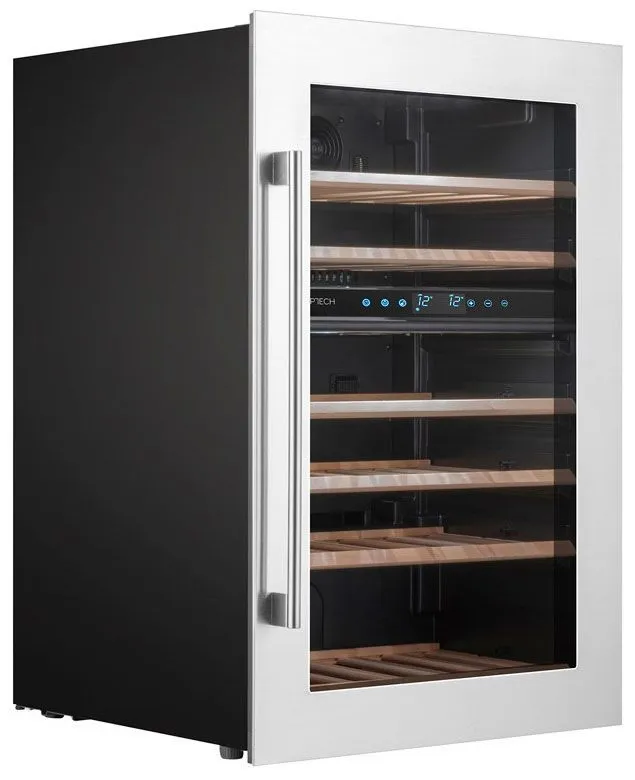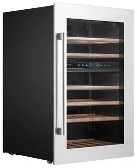 Данная модель винного шкафа оборудована вентиляторами, которые обеспечивают в нем циркуляцию воздуха, поддерживая постоянную и стабильную температуру. Конденсат используется повторно и поддерживает в приборе оптимальную влажность, а активный угольный фильтр обеспечивает свежий и чистый воздух.