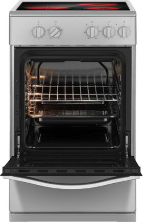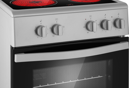 Электрическая отдельностоящая плита Weissgauff шириной всего 50 см, оснащенная духовкой с впечатляющим объемом 55 литров, а также стеклокерамической панелью с 3 Hi-Light конфорками и 1 зоной для размещения посуды без нагрева - это сочетание великолепной функциональности и практичности, воплощенное в бытовой технике, которая станет сердцем вашей кухни на долгие годы!