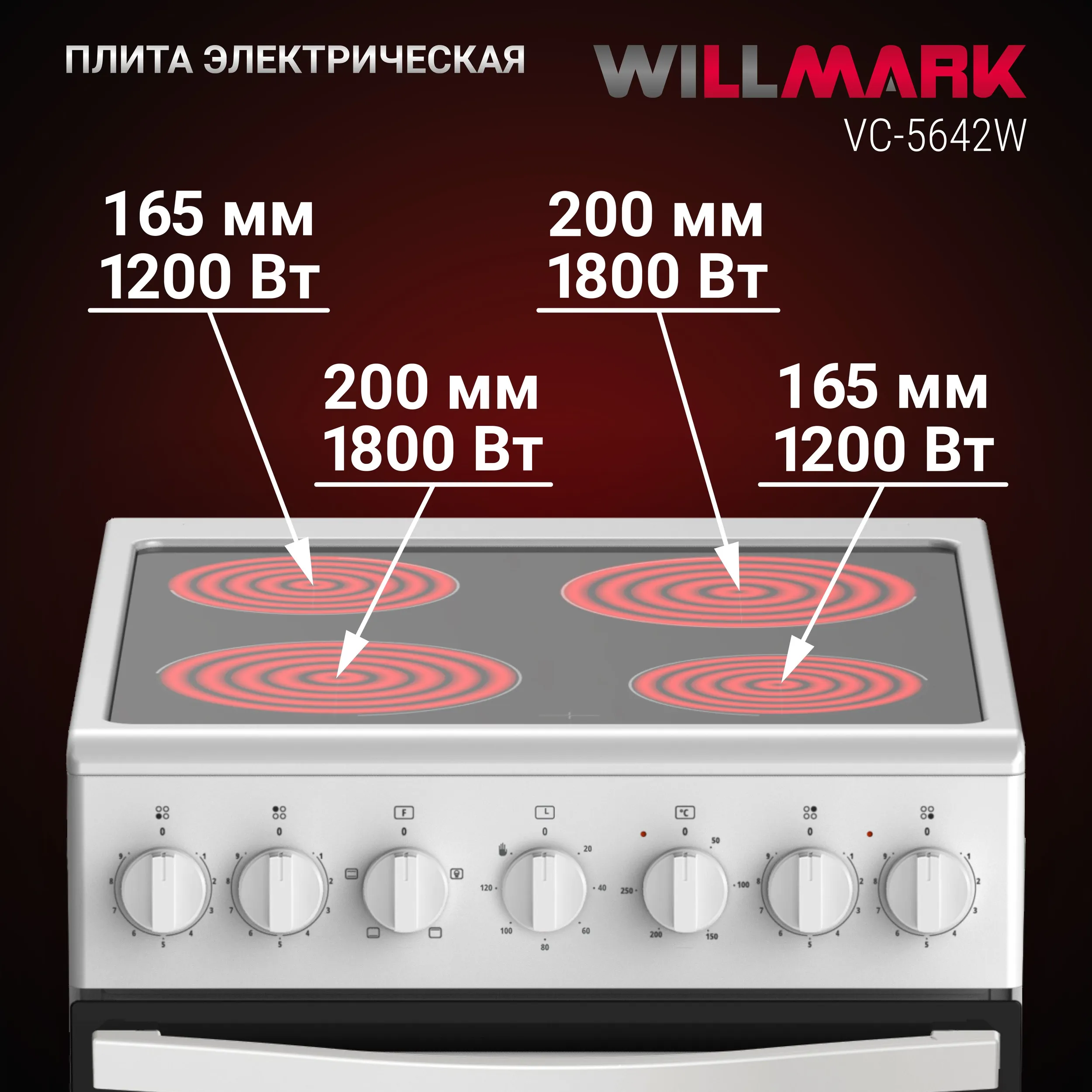 Мощность конфорок, Вт 1800+1800+1200+1200