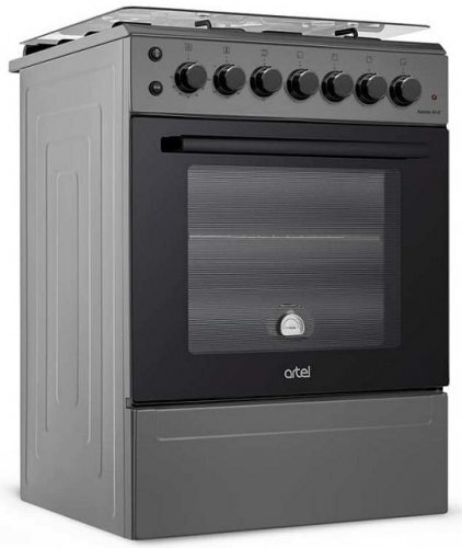 стекло дверцы духового шкафа термостойкое каленое, съемное; функция автоматического отключения; количество режимов работы духовки - 3; мощность верхнего ТЭНа 1300 Вт, мощность нижнего ТЭНа 1100 Вт; термометр духовки; индикатор работы ТЭНа духовки; таймер механический; в комплекте никелированная решетка духовки 1 шт., противень 2 шт.; в комплекте форсунки на природный, на сжиженный газ; материал решеток эмалированная сталь; крышка стеклянная; вес 41 кг