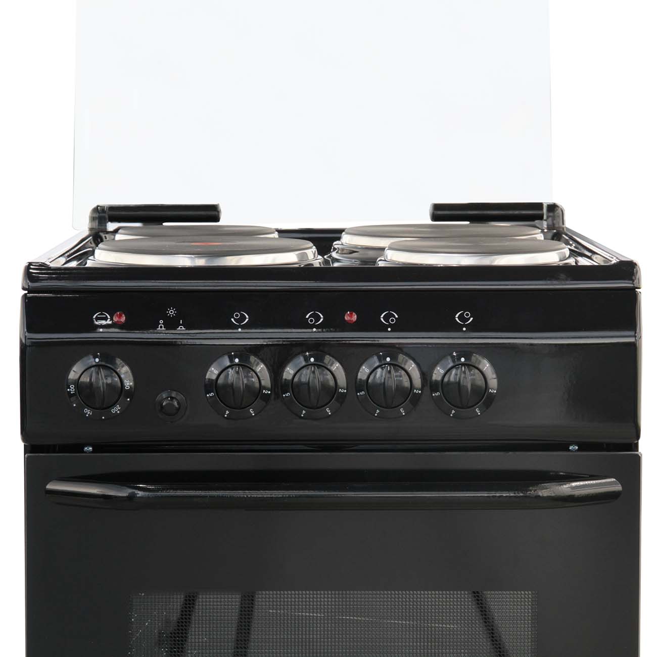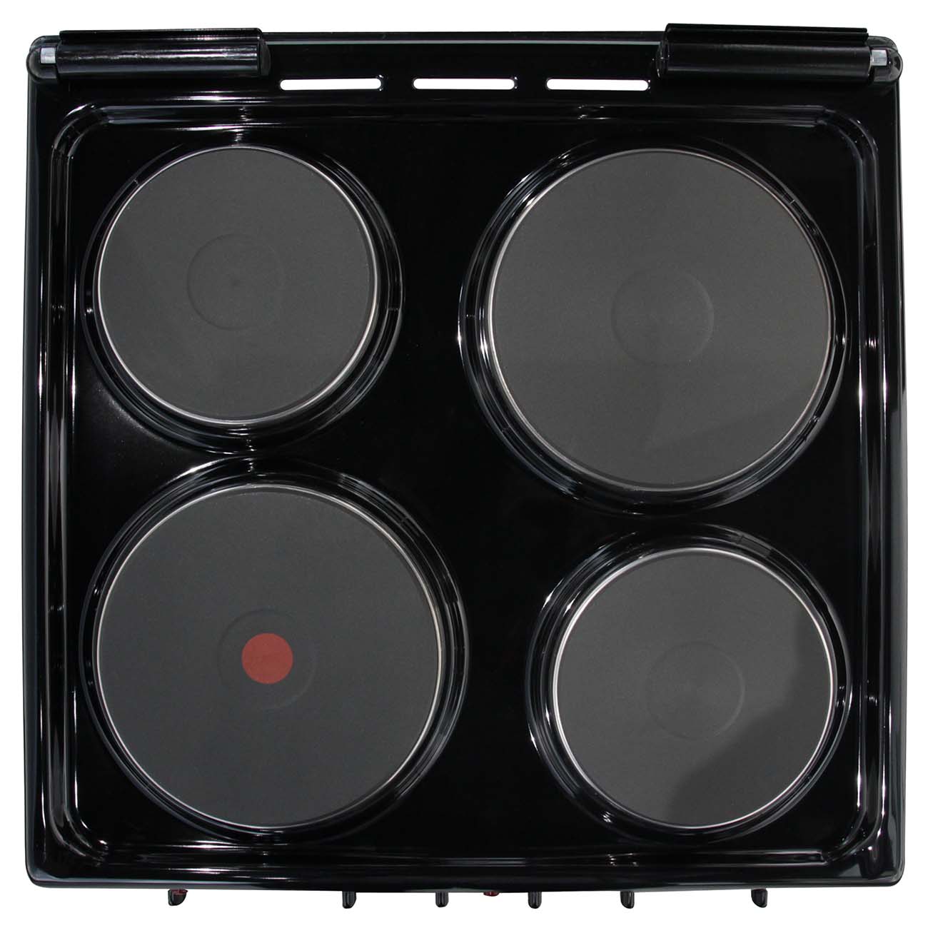 Мощность каждой конфорки 2 кВт (передняя левая), 1 кВт (задняя левая), 1 кВт (передняя правая), 1.5 кВт (задняя правая)