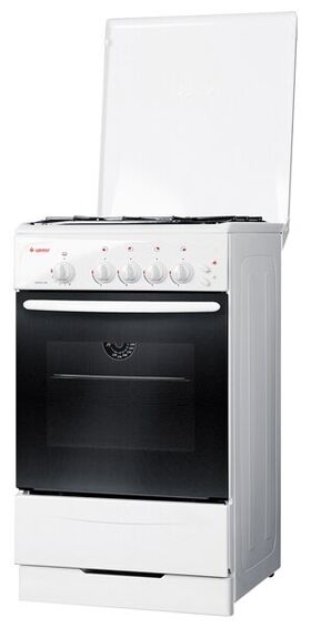 термоуказатель; штампованные направляющие духовки; регулировочные ножки; стальные решетки горелок стола; металлическая крышка; класс электробезопасности: II; масса нетто: 38.5 кг