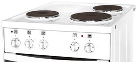 | Тип варочной поверхности | электрическая | | Управление конфорками | поворотные переключатели |  |  | | Духовка | | Тип духовки | электрическая | | Объем духовки | 49 л | | Максимальная температура | 300 °C | | Функции | термостат подсветка духовки