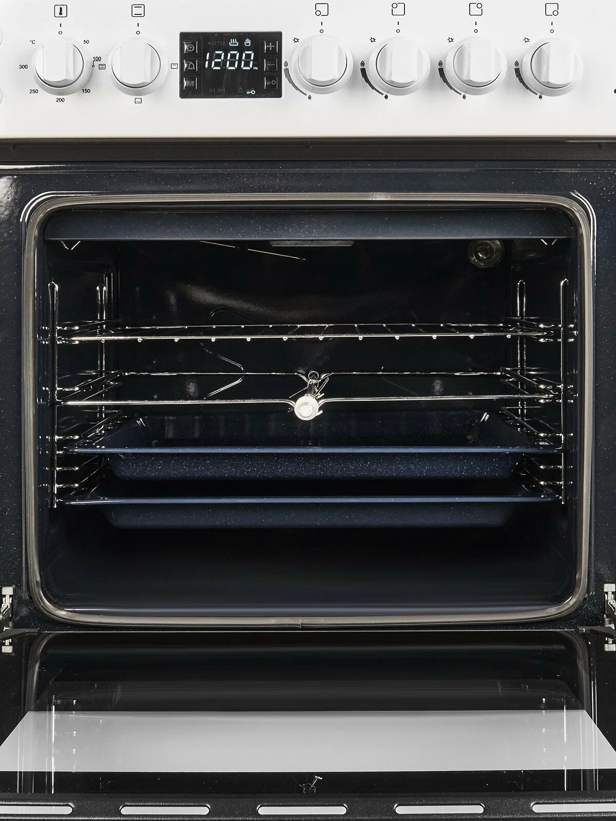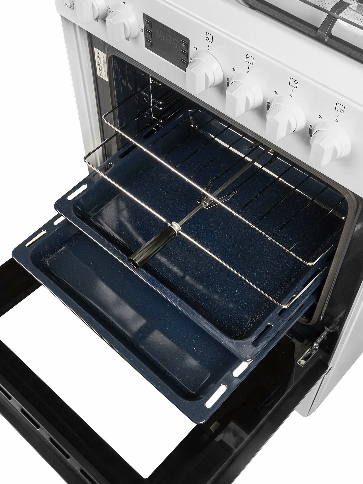 вертел, дисплей, ящик для посуды, Встроенные часы, Полностью стеклянная внутренняя дверца, Хромированные направляющие