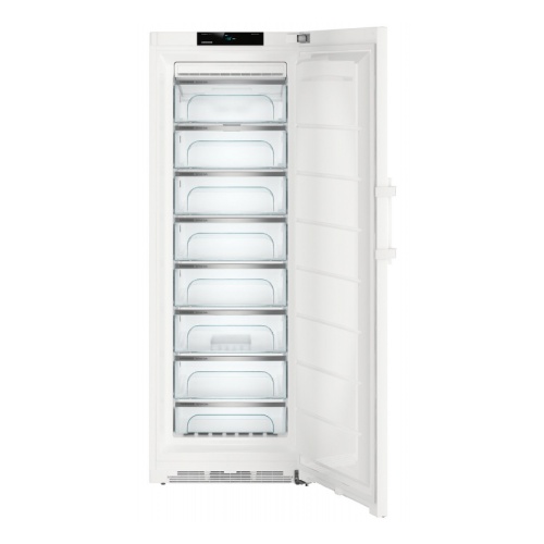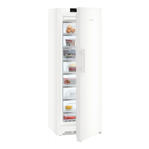 Для максимального удобства извлечения продуктов даже при полной загрузке в морозильных камерах серии BluPerformance используются выдвижные контейнеры с системой роликов. Для дополнительного удобства при извлечении или укладке продуктов на хранение, особенно в высоких приборах, верхний выдвижной контейнер слегка откидывается вниз. Нижний выдвижной контейнер, благодаря своему положению и размеру, предназначен для хранения мороженого, зелени и других продуктов в мелкой упаковке.