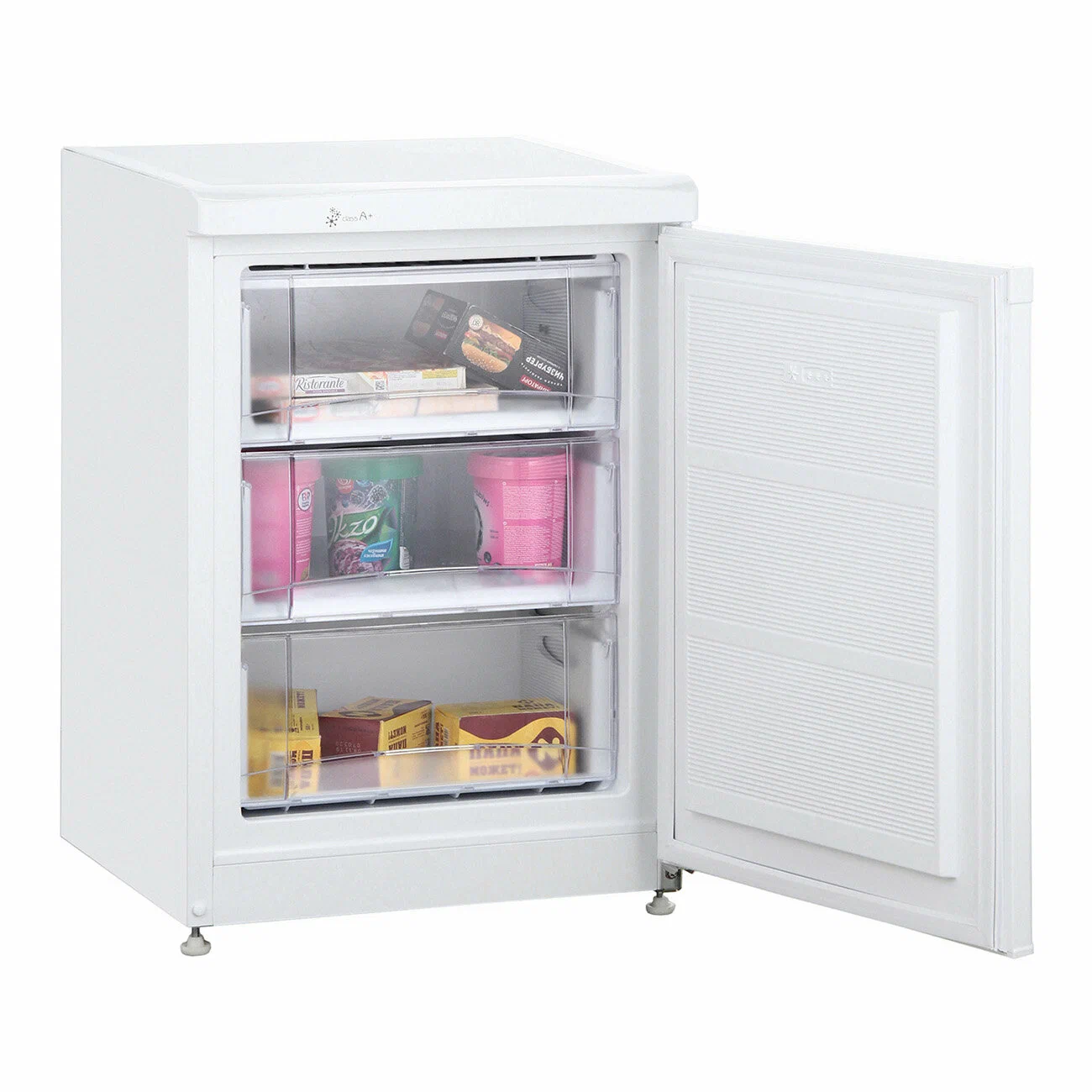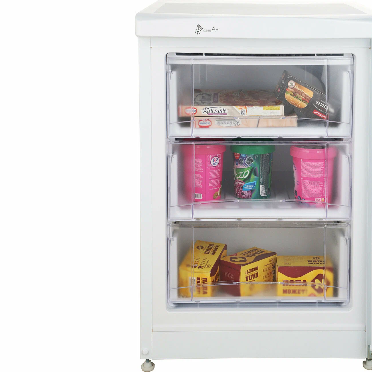 Морозильная камера Hi HDFRN084101DW белого цвета обладает общим объемом 100 л и размораживается вручную. Внутри находятся три ящика из прозрачного пищевого пластика. Максимальный уровень шума в процессе работы морозильной камеры составляет 38 дБ.
