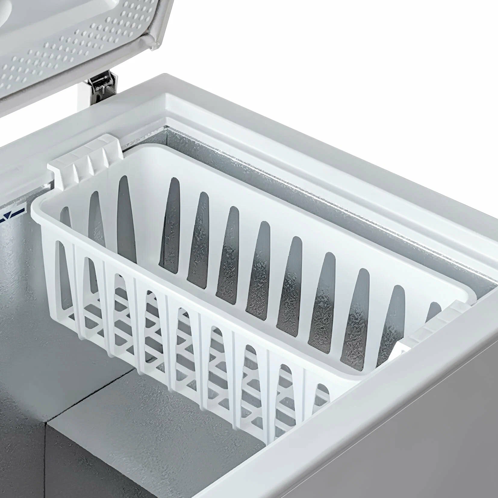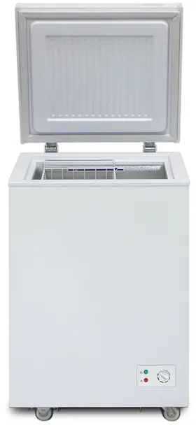 Морозильный ларь Бирюса 100KX оснащен световым индикатором включения и поворотным переключателем, предназначенным для настройки параметров устройства. Модель оборудована системой сигнализации, которая оповещает пользователя о нежелательном повышении температуры внутри камеры. Корзина морозильного ларя произведена из качественного металлического сплава. Прочный материал способен выдерживать перепады температуры без риска деформации и излома, что продлевает период эксплуатации устройства. Модель функционирует с использованием экологичного хладагента R600a.