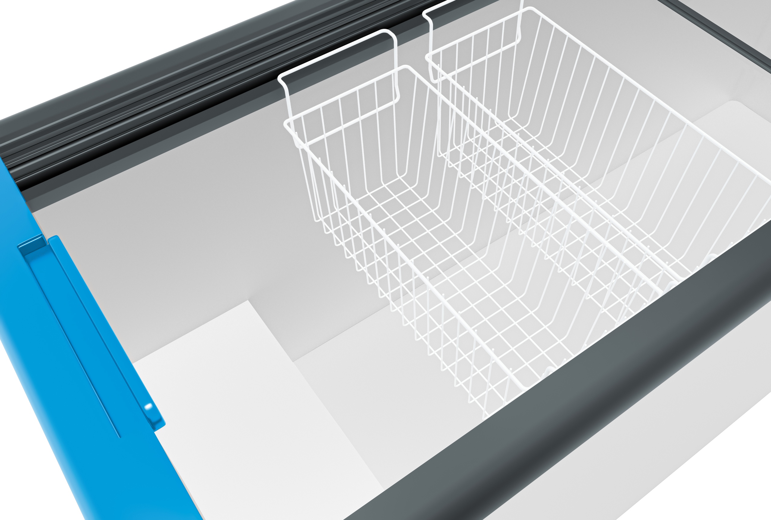 Крышка с прямыми стеклянными шторками гарантирует легкий доступ к корзинам, предлагаемый товар очень хорошо виден. Модель комплектуется импортным компрессором, отличающимся экономичностью и высокой надежностью. Прочный металлический корпус обеспечивает морозильному ларю многолетнюю беспроблемную эксплуатацию.