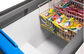 Надежный морозильный ларь средней величины с изогнутыми стеклянными шторками для лучшего обзора замороженной продукции. Ларь поставляется на колесиках для удобства передвижения. 4 корзины в комплекте помогают удобно разметить товар.