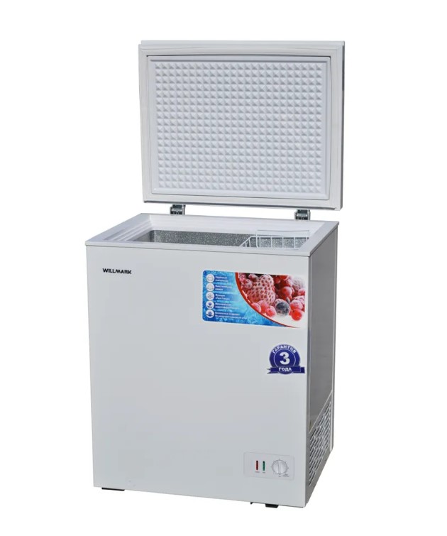 Морозильный ларь WILLMARK CF-120G - это надежный морозильный ларь, с общим объёмом 105 литров, обеспечивающий безопасное и длительное хранение продуктов питания. Низкий уровень шума, экономный режим потребления электроэнергии – достоинства данной модели! Морозильный ларь в светло-сером исполнении, дверца ларя инкрустирована калёным стеклом привлекательного дизайна. Имеет компактные размеры, что позволит ему отлично вписаться в любой интерьер. Модель снабжена двумя роликами для удобства перемещения. Панель управления состоит из механического регулятора мощности охлаждения размеченного на 7 единиц с устанавливаемой температурой внутри. При средней загруженности температура регулируется от -16 до -24 градусов Цельсия. А также световые индикаторы питания сети (зелёного цвета), индикатор работы (красного цвета). В комплектацию модели входит одна подвесная корзина. Длина сетевого шнура 160 сантиметров.