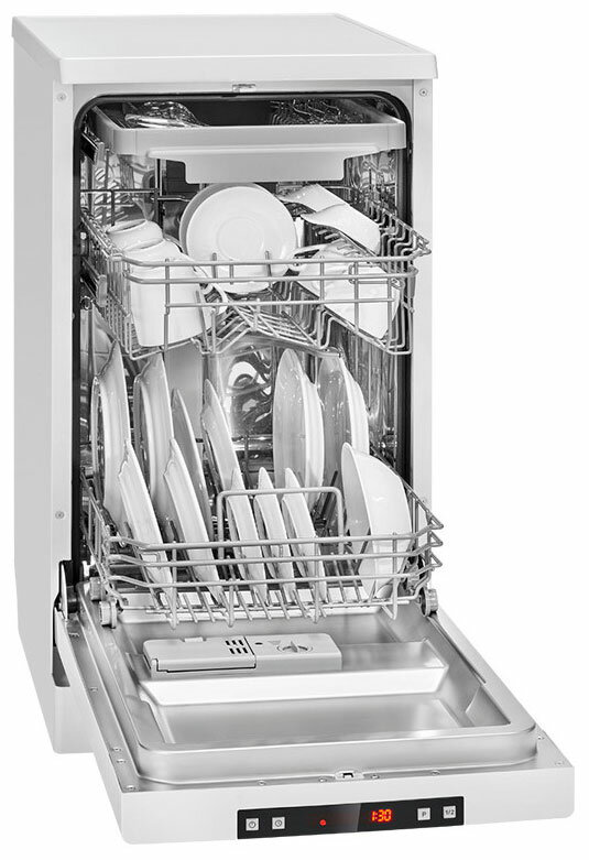 индикация времени до окончания программы, 6 уровней регулировки жесткости воды, ионообменник (смягчение воды), высота верхней крышки 3 см