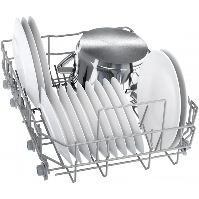 Представьте посудомоечную машину BOSCH SPS4HMI64Q из серии 4 – отдельностоящий вариант шириной 45 см в стильном серебристом цвете, идеально подходящий для компактных пространств. Эта модель сочетает передовые функции с простотой использования, обеспечивая безупречную чистоту посуды благодаря интуитивным программам и интеллектуальным опциям. Система Vario Flex корзин позволяет настраивать пространство для любой нагрузки, от тарелок до кастрюль, а третий короб специально для столовых приборов оптимизирует хранение с двумя складными держателями в нижней корзине. Для удобства опция Rackmatic 3 регулирует высоту верхней корзины, а один подстаканник в верхней для надежной фиксации бокалов.