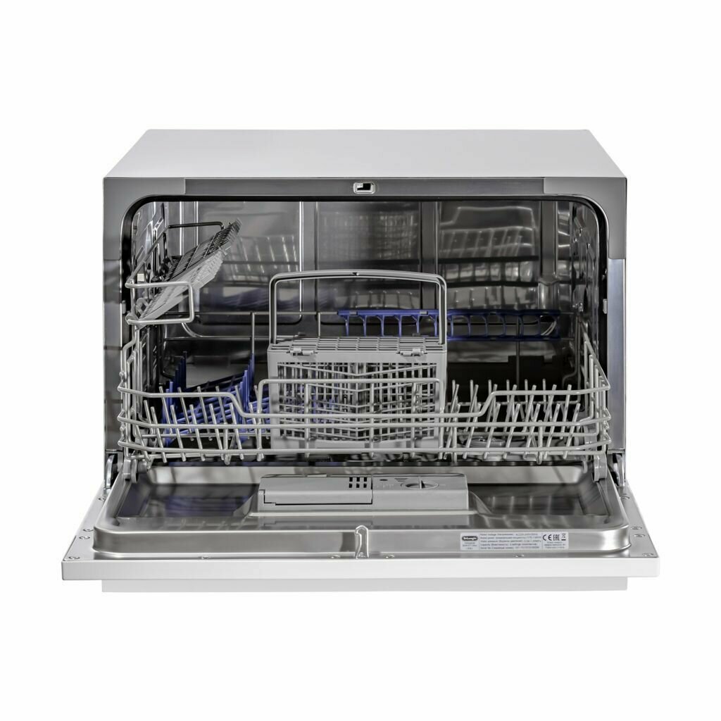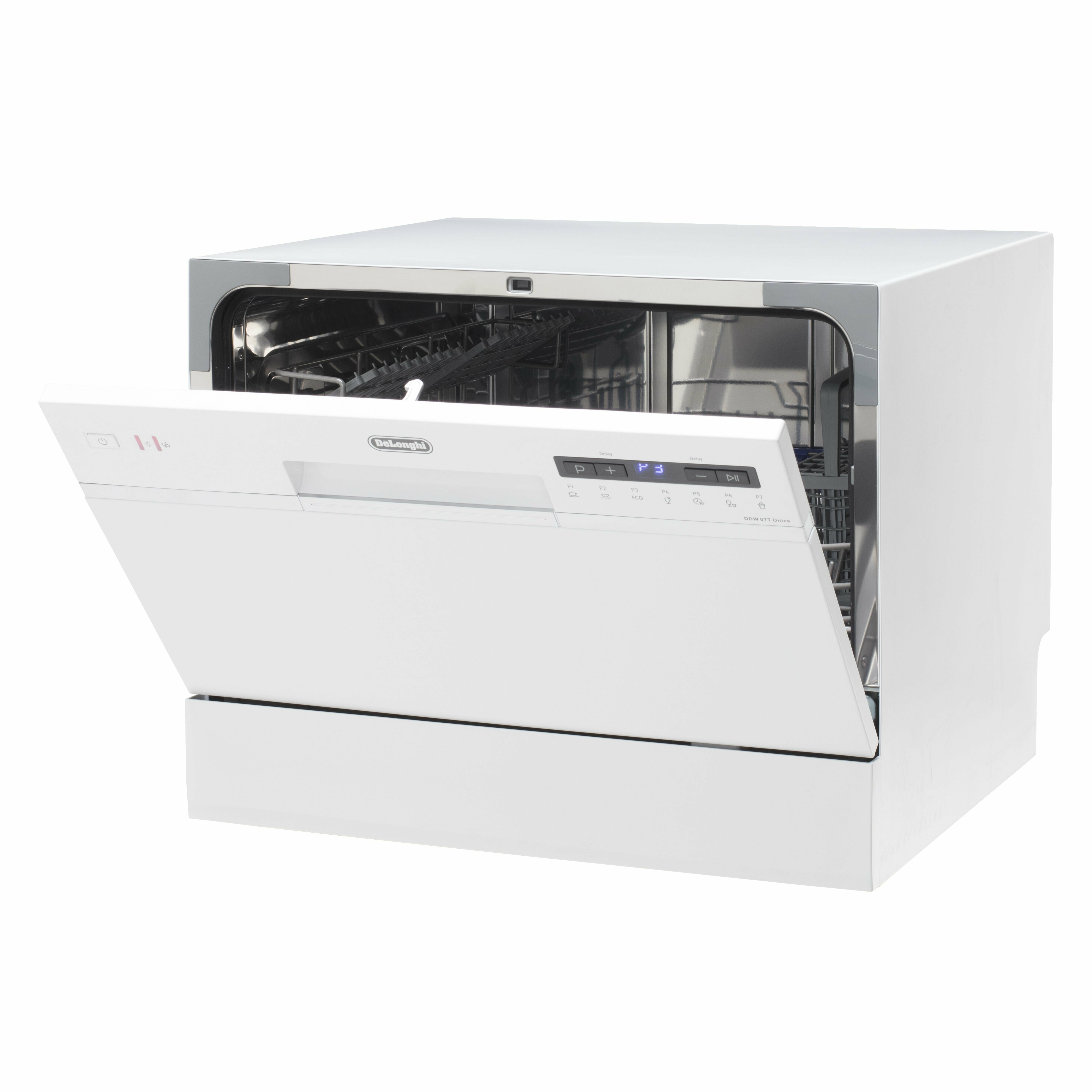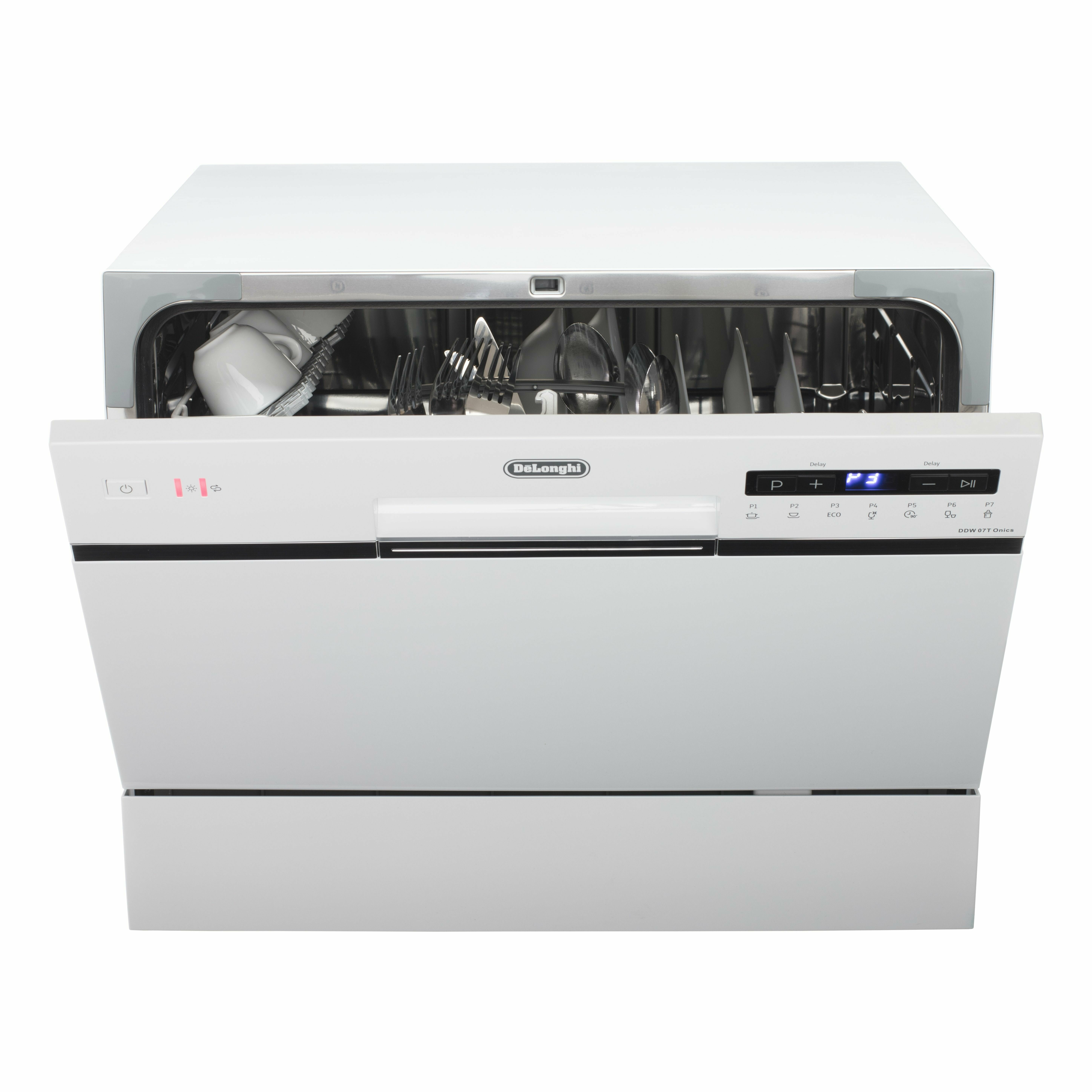 Отдельностоящая посудомоечная машина DeLonghi DDW07T Onics сочетает компактные размеры и отличный набор режимов работы. Она вмещает 6 комплектов посуды при ширине 55 см и глубине 50 см. Корпус нейтрального белого цвета, поэтому устройство отлично будет смотреться в практически любом интерьере.