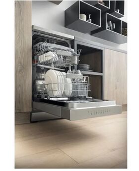 Внутренняя поверхность камеры из нержавеющей стали в посудомоечной машине Hotpoint обеспечивает сверкающую посуду и чистоту внутри прибора.