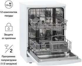 внутренняя поверхность из нержавеющей стали, использование средств 3 в 1, проточный водонагреватель, регулируемая по высоте корзина для посуды, таймер отсрочки