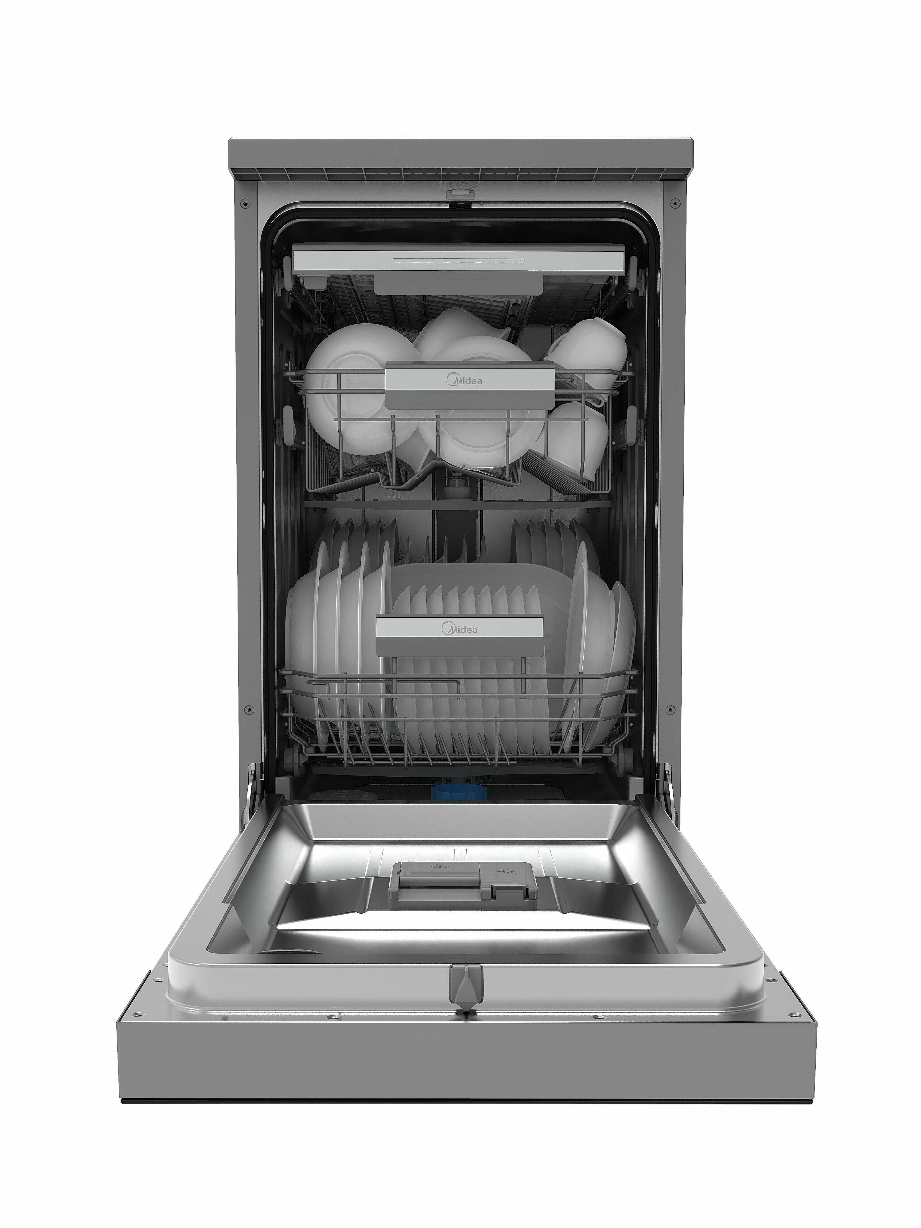 Отдельностоящая посудомоечная машина Midea MFD45S350Si – это сочетание функциональности и стильного дизайна. Серебристый и черный цвета корпуса придают ей современный и элегантный вид, который будет гармонично смотреться в любом интерьере.