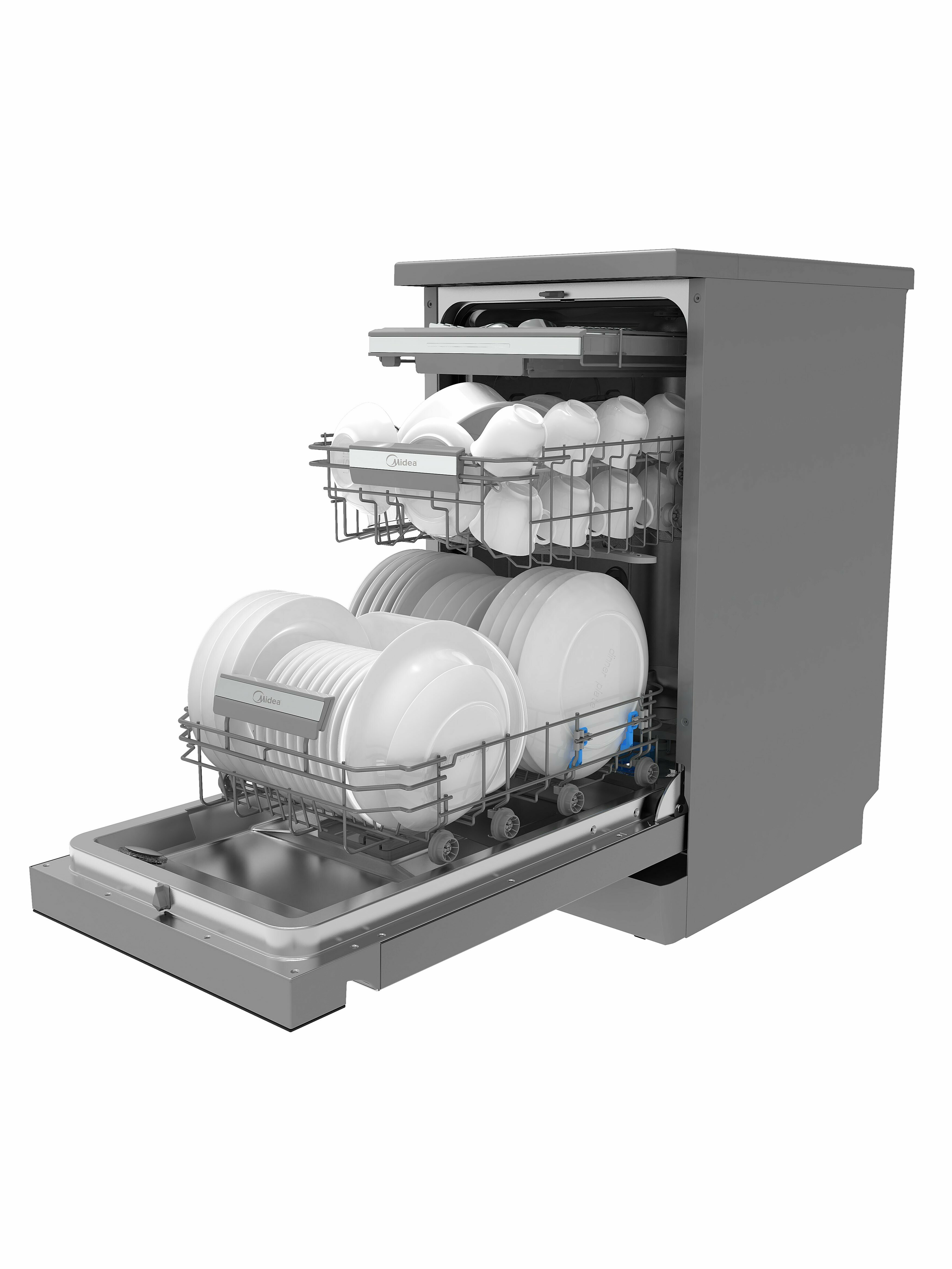 Особенностью данной модели является наличие 3-го разбрызгивателя, что обеспечивает более тщательное мытье посуды. Внутренняя поверхность из нержавеющей стали обеспечивает долговечность и гигиеничность.