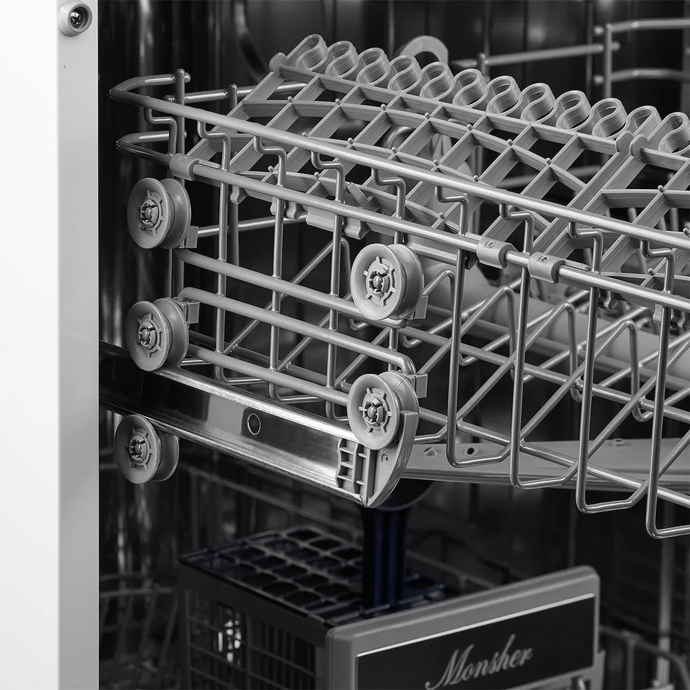 Особенности посудомоечной машины: Поддон для столовых приборов, Полка для чашек, Регулировка высоты корзин, Съемные насадки разбрызгивателей