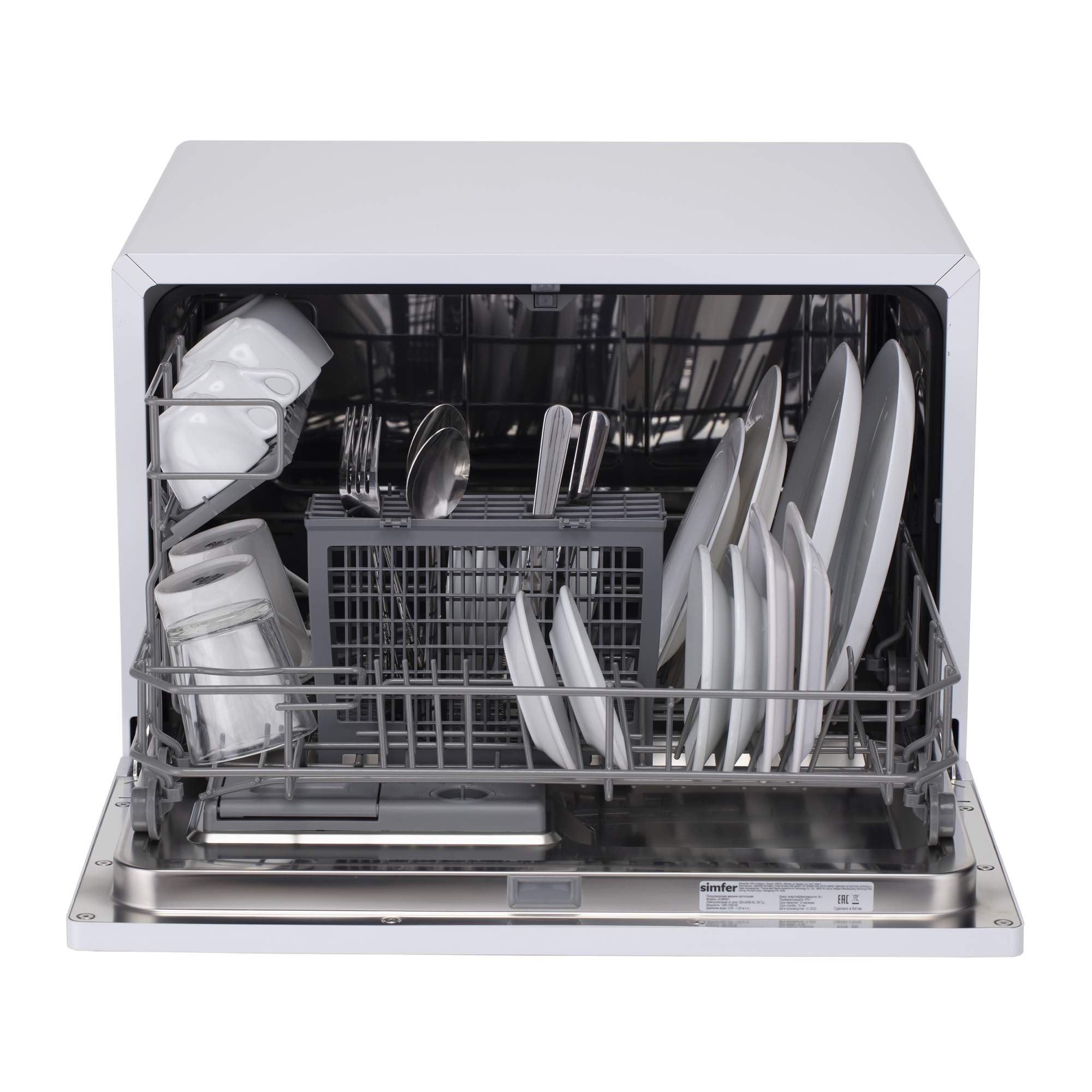 Корзина для столовых приборов, полка для чашек и столовых ножей, стандартный впускной шланг, стандартный сливной шланг, винты 2 шт, зажимная лента, инструкция и гарантийный талон