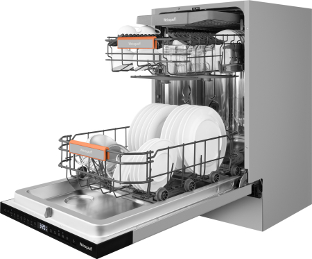 Узкая посудомоечная машина Weissgauff, оснащенная лучом на полу и функцией автоматического открытия дверцы, что делает данную модель не только эффективной но и по-настоящему удобной в работе, так же сэкономит место на вашей кухне и обеспечит идеальный результат, а наличие 8 программ позволит подобрать оптимальный режим в зависимости от количества посуды и степени загрязнения.
