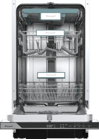 До 10 комплектов посуды одновременно вы можете расположить в данной посудомоечной машине, благодаря современным продуманным и эргономичным корзинам, которыми Weissgauff оснастили эту модель